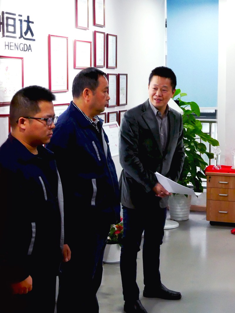 接着, 董事长兼总经理潘志东就公司新址作搬迁动员,潘志东总经理说道,这次的迁址与以往不同,是扩大生产需要更好的发展场地,是一次小小的过渡,3年之后,在富阳,我们将拥有自己的办公大楼、测试实验场地、生产场地,届时,我们的生活水平、办公条件、工作环境都会更上一个台阶。