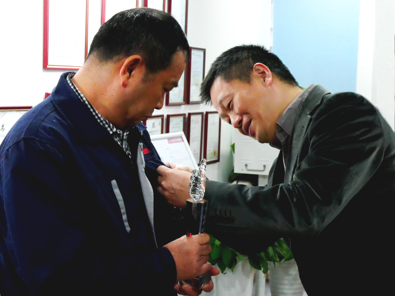 董事长兼总经理潘志东向获奖员工表示祝贺,并总结了4位先进标兵的先进事迹和他们身上熠熠生辉的优秀品质。潘志东总经理表示,不忘初心、致敬功臣,是BG视讯平台表彰先进的初衷。这次获奖的有自愿带兵的老员工,也有崭露头角的年轻人,还有核心的骨干成员,表彰不仅仅是对过往的奖赏,更重要的是对将来的鼓励,希望获奖员再接再厉,用持之以恒的奉献精神为公司增光添彩。